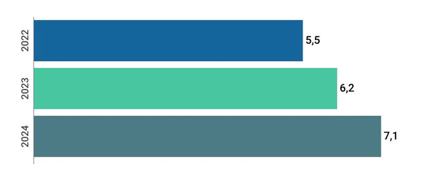 A associação chegou a 100% das unidades da Federação após superar a marca de R$ 7,1 bilhões de faturamento em 2024, patamar próximo das maiores representantes do varejo farmacêutico gaúcho – as Farmácias São João e a Panvel. O crescimento em relação ao ano anterior foi de 14,3%, dois pontos percentuais acima do avanço geral do varejo farmacêutico. O market share é de 3,2%.