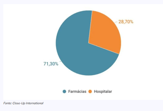 As farmácias são protagonistas na comparação com o mercado institucional. Com exceção da Colômbia e do Paraguai, em todos os demais países, o varejo farmacêutico supera a movimentação da área hospitalar. Chile, com 97,8% e México, com 96,3%, são as nações onde as varejistas têm maior representatividade. No Brasil, a diferença também é expressiva, embora menos acentuada.