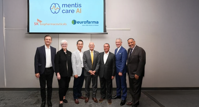 Executivos celebram o lançamento da Mentis Care, uma joint venture estabelecida pela SK Biopharmaceuticals e Eurofarma.