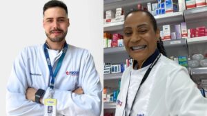 O advento das salas clínicas nas farmácias ganha rosto e voz nas histórias de Renane Bernardes (44 anos), coordenadora farmacêutica; e Jionnington da Silva Avelino (32 anos), farmacêutico clínico da Drogaria Venancio, no Rio de Janeiro. Suas trajetórias revelam como a farmácia deixou de ser apenas um ponto de venda para se firmar como um hub de atenção primária.
