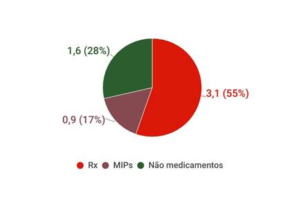 A categoria de Rx foi responsável por 55% do faturamento das redes da Fecofar, três pontos percentuais acima da média geral de receita do varejo farmacêutico com esse segmento.