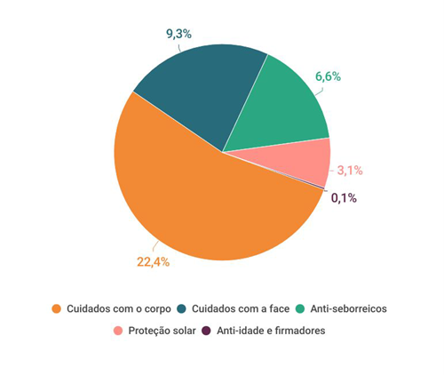 Já o segmento de cuidados com o corpo apresentou o maior crescimento no período, com alta de 22,4% e um ganho de três pontos percentuais na participação de mercado.