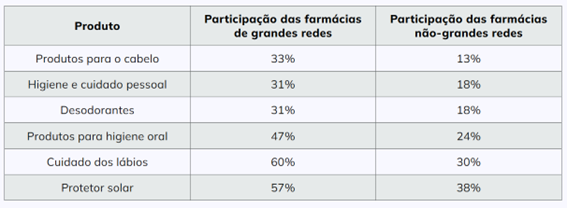 Embora as compras de produtos de cuidados pessoais ainda sejam mais comuns em supermercados, o varejo farmacêutico mantém protagonismo em diversas categorias.
