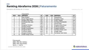 Fonte: https://guiadafarmacia.com.br/ranking-abrafarma-grandes-redes-faturaram-r-1185-bi-em-2025/