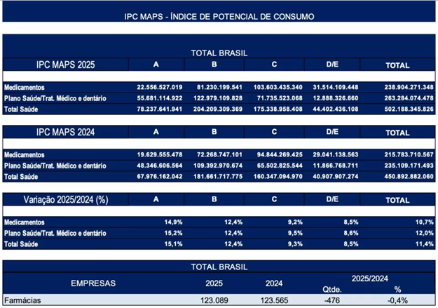 Segundo dados do IPC Maps, especializado em potencial de consumo brasileiro, o setor de saúde deve movimentar, no país, cerca de R$ 502,2 bilhões ao longo de 2025 — o que representa um acréscimo de 11,4% em comparação ao ano passado.